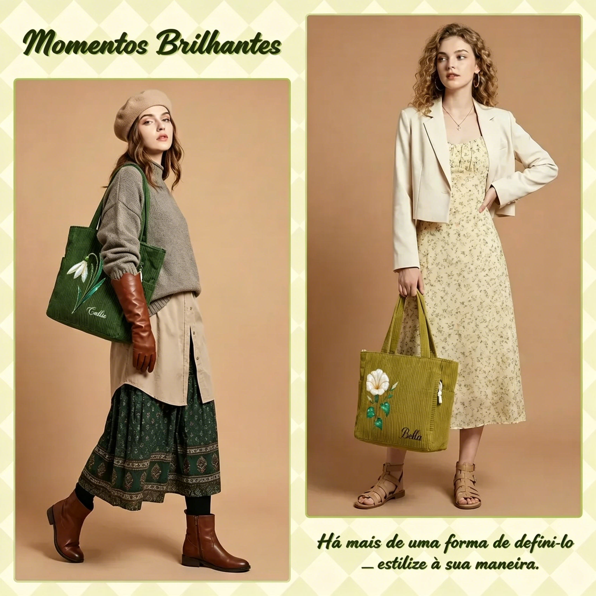 Centrado em torno do motivo exclusivo da flor do nascimento, este design combina com personalização de nomes personalizados. Seu estilo gentil e elegante exala um senso de ritual pessoal, alinhando-se precisamente com as preferências estéticas femininas. O tecido de veludo cotelê evoca naturalmente uma textura vintage, elevando a bolsa comum do dia a dia além da monotonia em um acessório distinto que combina apelo visual com significado comemorativo. O tecido de veludo cotelê de alta qualidade oferece uma sensação suave e substancial com linhas distintas e texturizadas. Durável e resiliente, resiste a pilling e deformação durante o uso diário. Adequado para todas as estações, atinge um equilíbrio entre conforto e longevidade. Alças de ombro largas reduzem a pressão, garantindo um ajuste confortável sem cavar, combinando praticidade com design ergonômico. A funcionalidade básica adaptada para viagens diárias-seja navegando em metrôs lotados, ônibus correndo ou dirigindo sozinho-acomoda sem esforço todos os itens essenciais para viagens contínuas. Ideal para viagens de compras, passeios de fim de semana ou escapadelas curtas, seu design espaçoso contém todos os seus pertences. O material de veludo cotelê e o motivo da flor do nascimento complementam diversos estilos, combinando sem esforço com a estética casual, minimalista ou vintage. Sob medida para mulheres, é um presente atencioso para melhores amigos, colegas ou entes queridos. A combinação personalizada de flores e nomes de nascimento satisfaz a individualidade enquanto transmite um sentimento sincero. Seja para aniversários, feriados ou como uma surpresa diária, torna-se um item apreciado que combina valor prático com calor emocional.