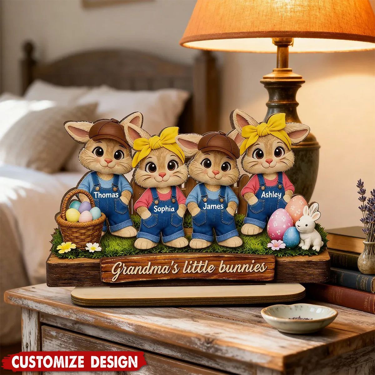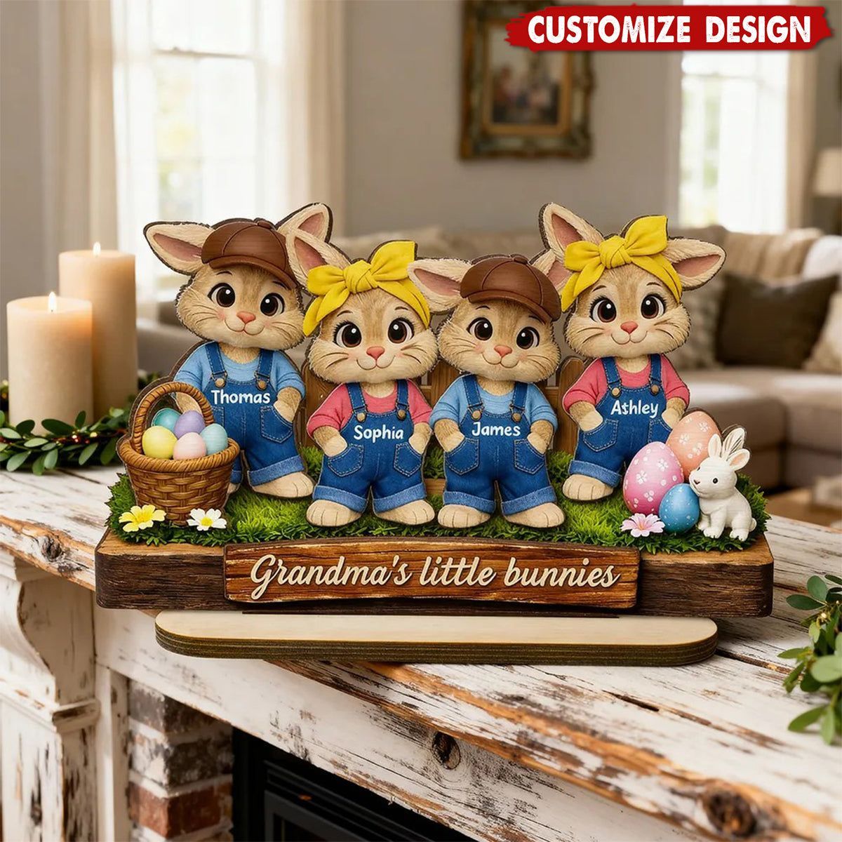 Coelhos pequenos personalizados Placa de madeira de 2 camadas-Presente De Páscoa Para A Vovó