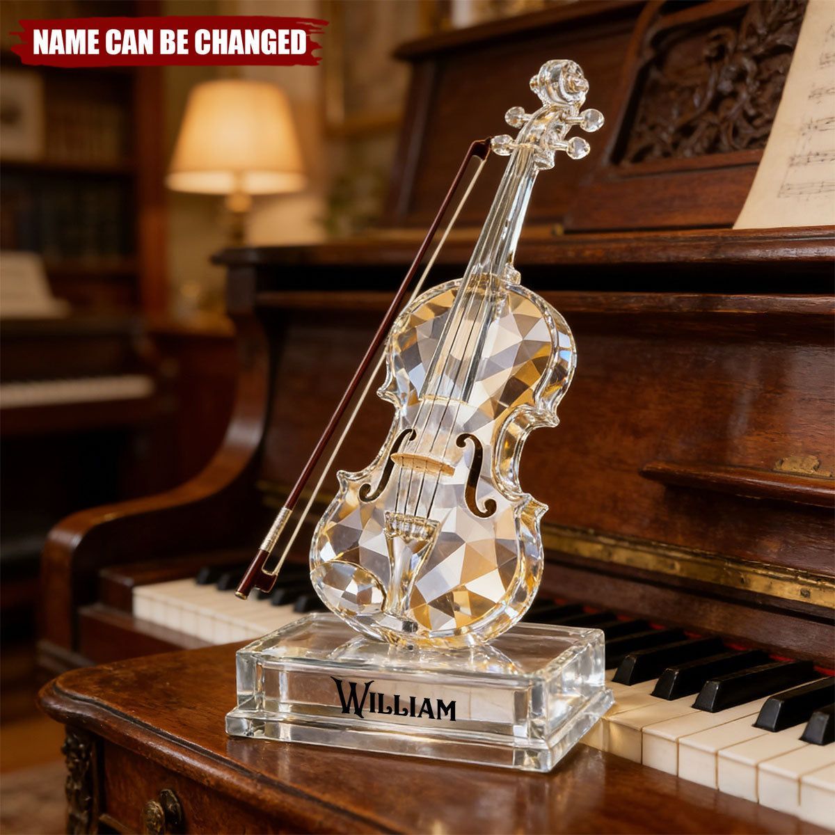 Placa acrílica personalizada do efeito do cristal da música 3D do violino, presente para o músico