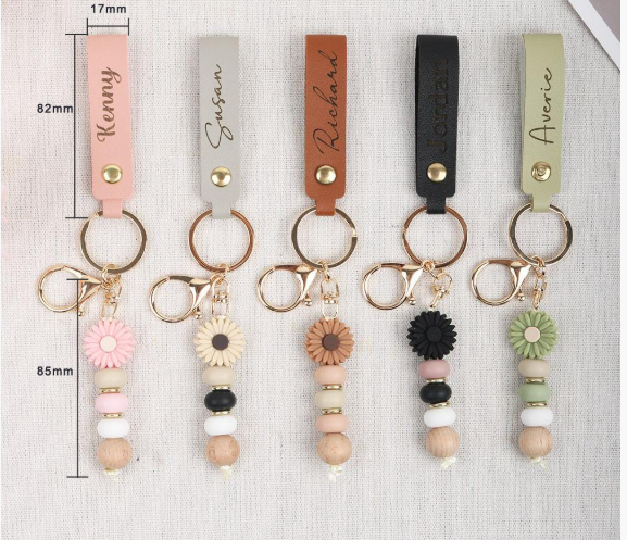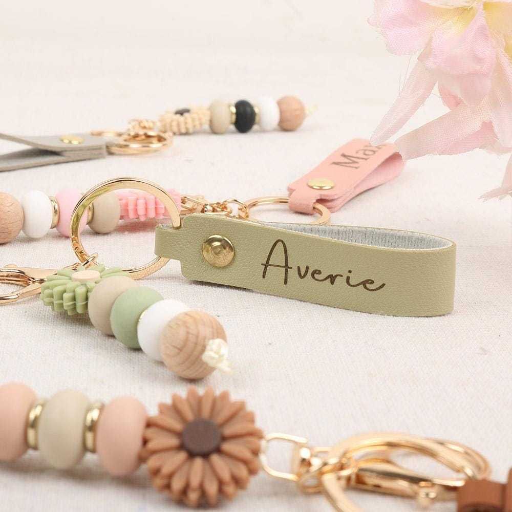 Personaliserad nyckelring, präddrad nyckelring, lädernyckelring, blomsterflicka gåva, lärargåva, födelsedagspresent