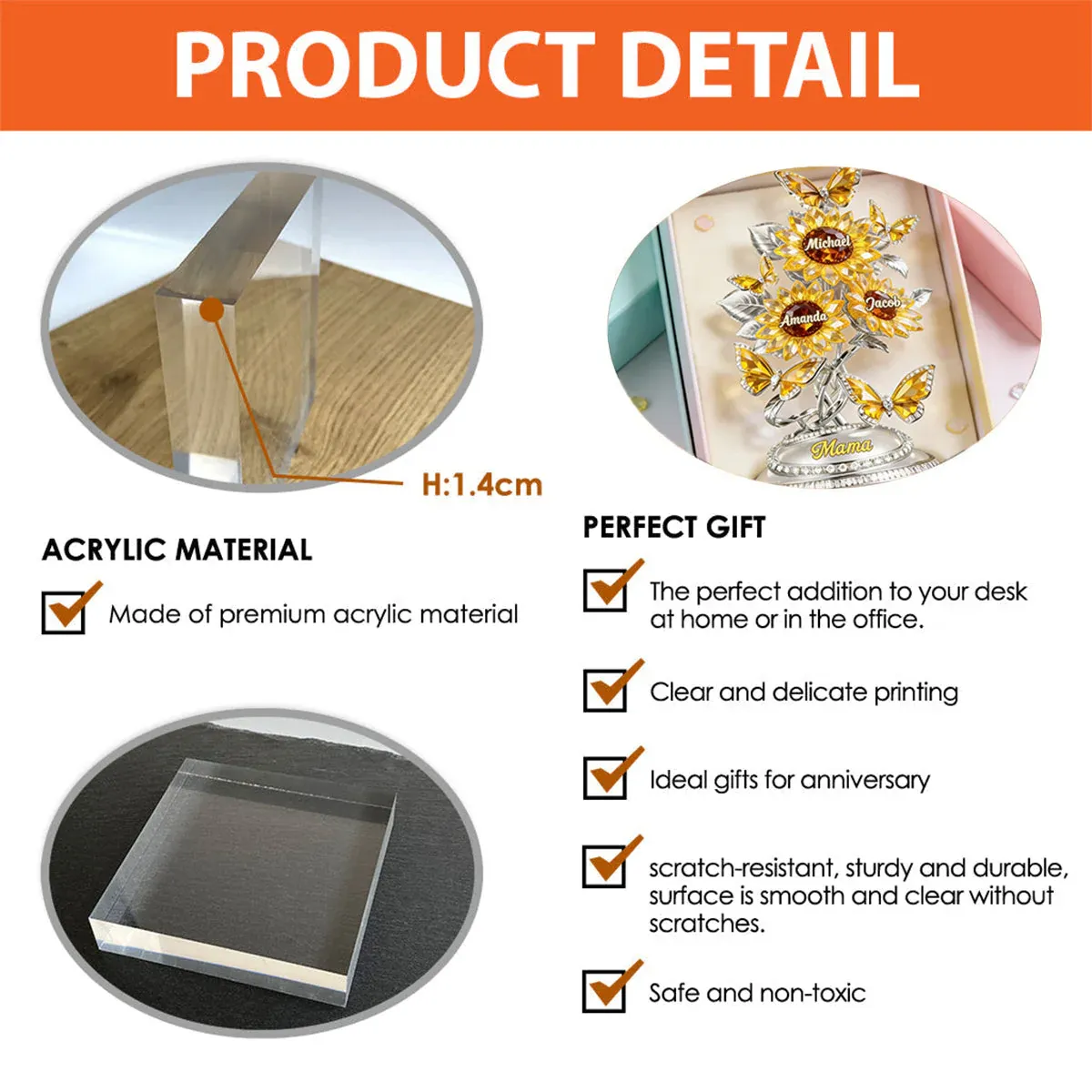 Blooming amor placa acrílica-presentes personalizados para mamãe