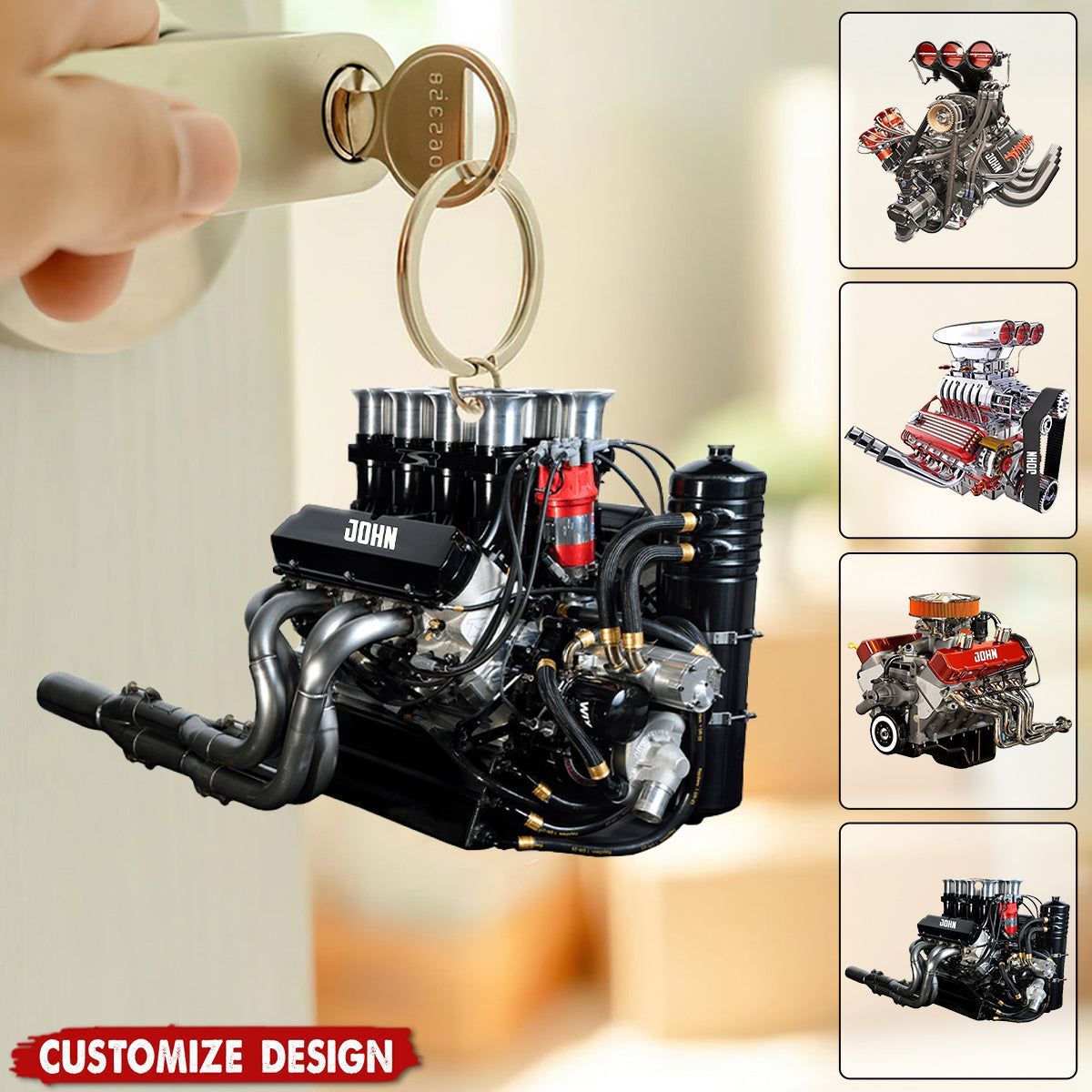 Drag Racing Hot Rod V8 Motor-Personalizado Drag Racing Keychain-Presente Para Amantes De Corrida