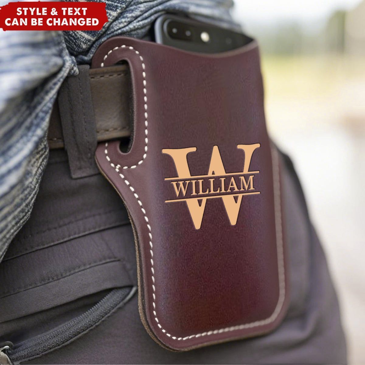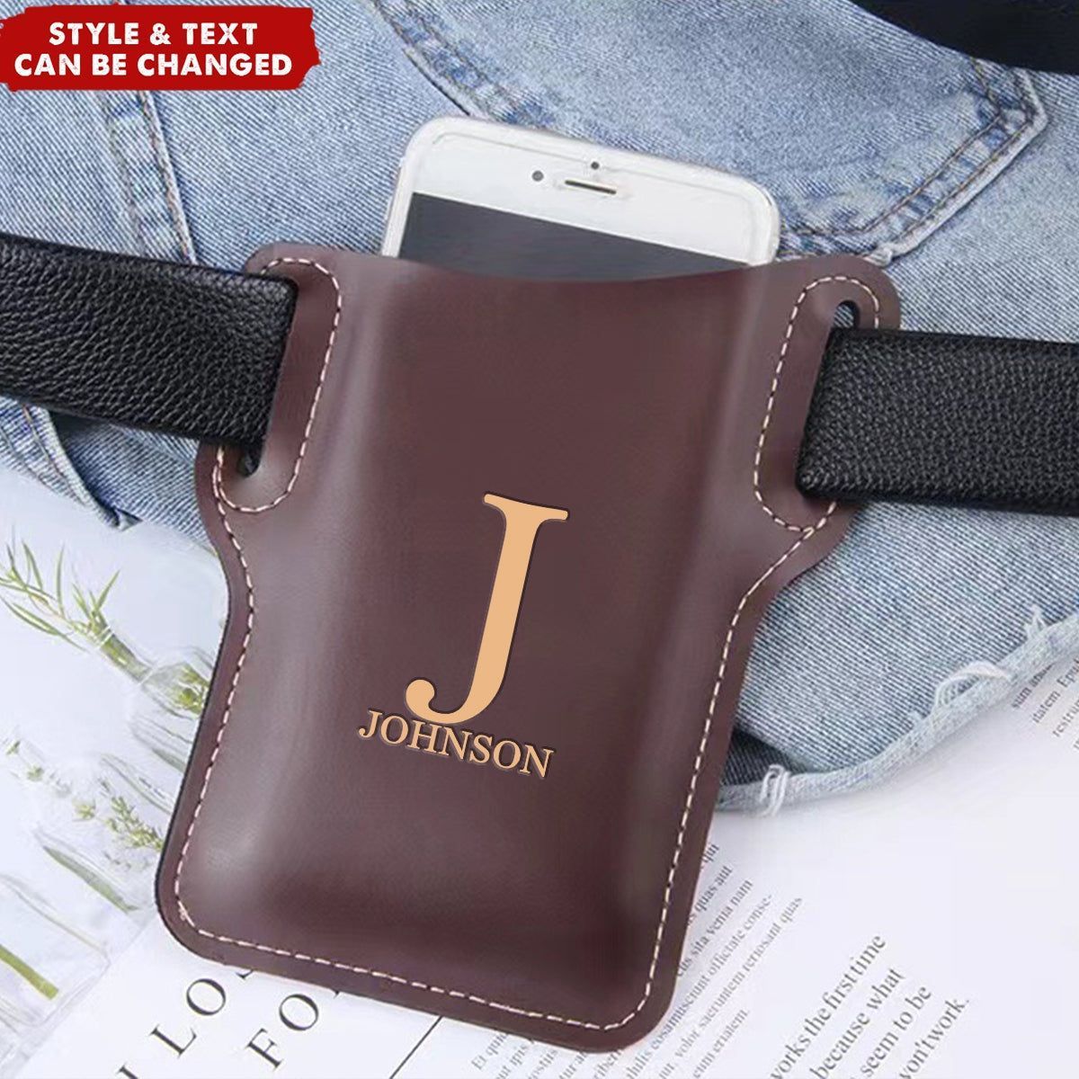 Personaliserade män läder Loop pack väska väska Cellphone bälte midja väskan