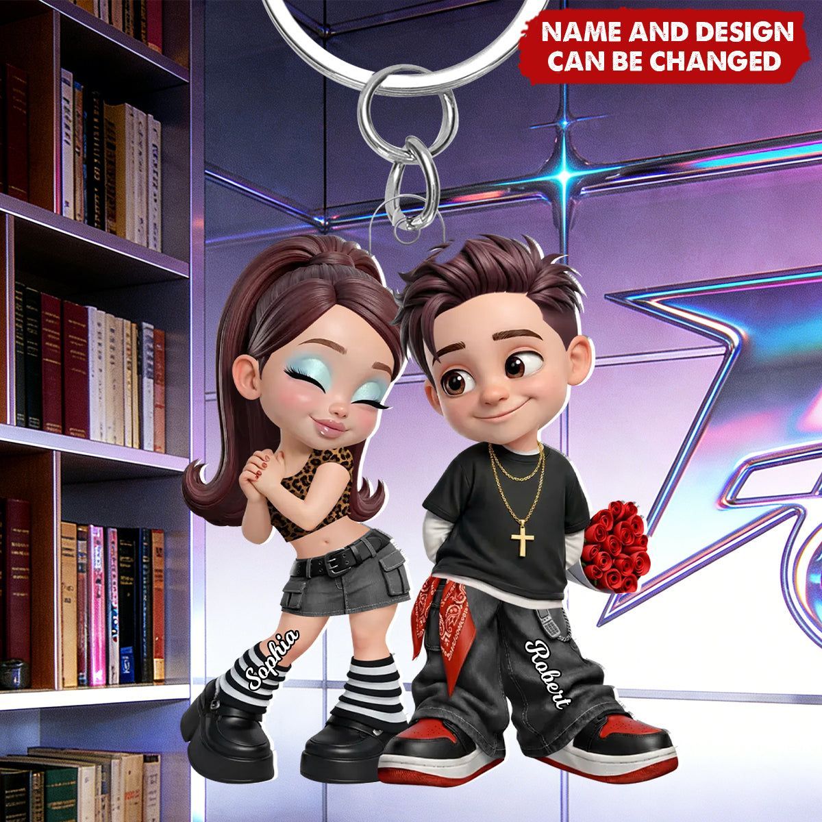 Trendy Y2K Couple-Chaveiro personalizado, presente para casal
